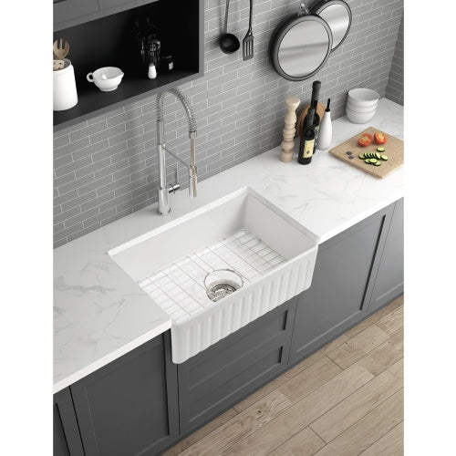 White Fluted Fireclay Single Bowl Sink 610x459x254mm (Model WFS 6145)