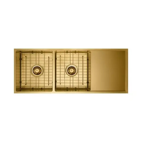 Vertex Brushed Brass Gold Double Bowl Stainless Steel Sink with Drainer 1114x440x200 (Model SDD 1144)
