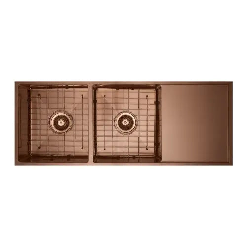 Vertex Brushed Copper Rose Gold Double Bowl Stainless Steel Sink with Drainer 1114x440x200 (Model RGSDD 1144)