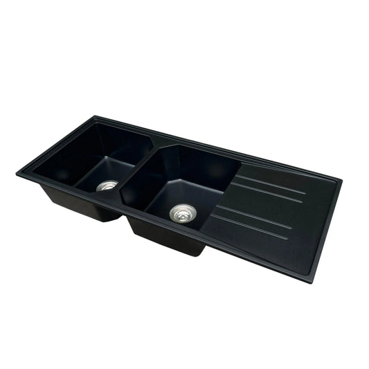 Black Granite Double Bowl Sink With Drain, 1160x500x235mm (Model BGDD 11650)
