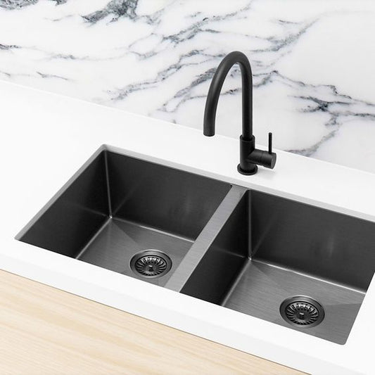 Vertex Gunmetal Black Double Bowl with Drainer Stainless Steel Sink 1114x440x200 (Model SDD 1144))