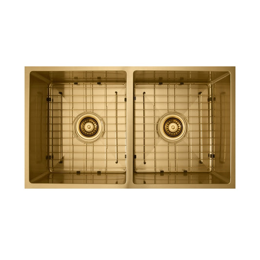 Vertex 760x440x200 Brushed Brass Gold Double Bowl Stainless Steel Sink