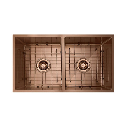 Vertex 760x440x200 Brushed Copper Rose Gold Double Bowl Stainless Steel Sink