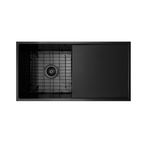 Vertex 850x450x230 Gunmetal Black Single Bowl with Drainer Stainless Steel Sink