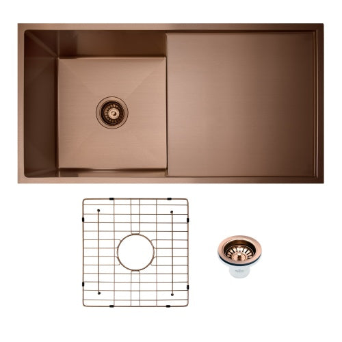 Vertex 850x450x230 Brushed Copper Rose Gold Single Bowl with Drainer Stainless Steel Sink