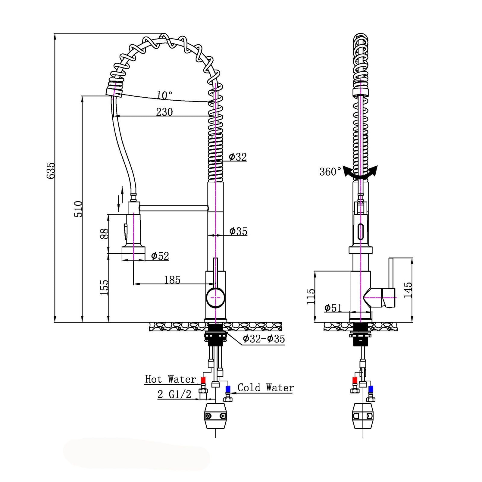 Tall Spring Chrome Pull Out Kitchen Sink Mixer Tap